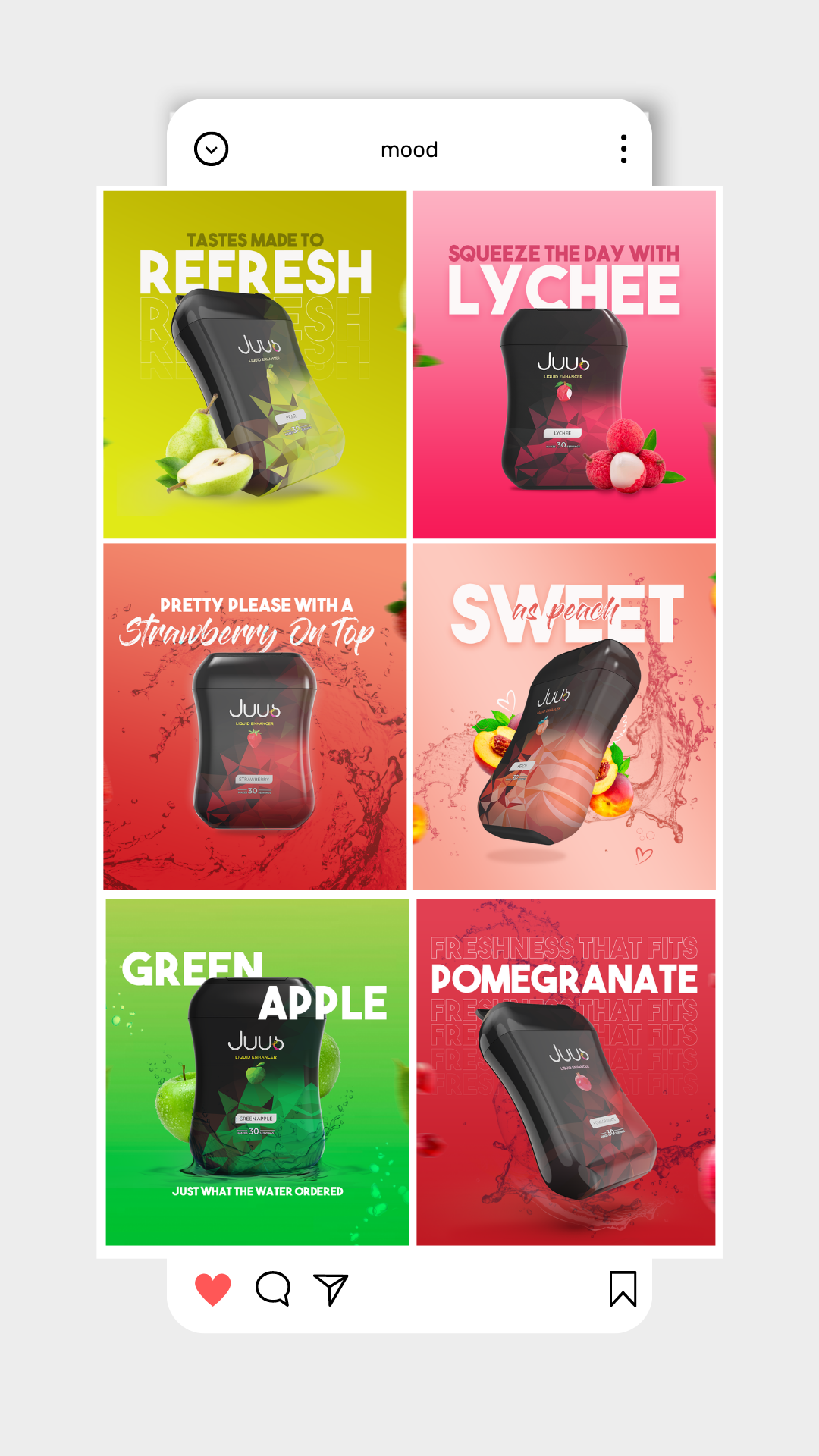 The Juus line includes six exciting flavours: Peach, Strawberry, Green Apple, Pomegranate, Pear, and Lychee.